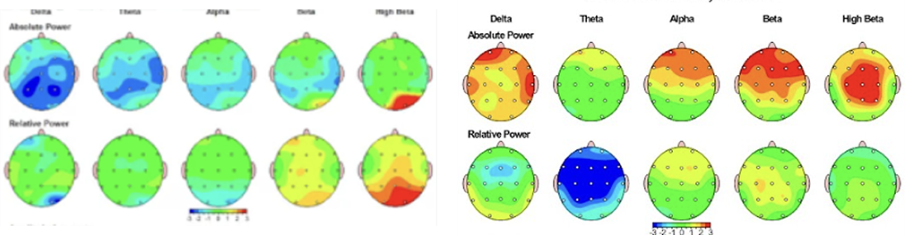 정량뇌파 검사를 통해, 불안·공황 환자들에게 다음과 같은 특징적인 뇌신호 패턴이 관찰됩니다.