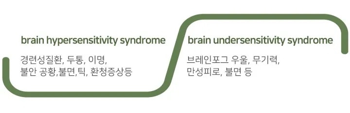 뇌 기능을 담당하는 신경전달물질의 균형이 깨지면, 어떤 사람은 뇌가 과민하게 반응하고(과활성), 어떤 사람은 뇌 기능이 떨어지는 상태(저활성)가 됩니다.